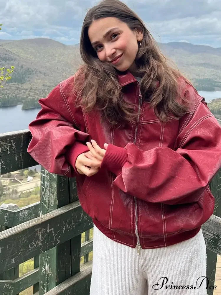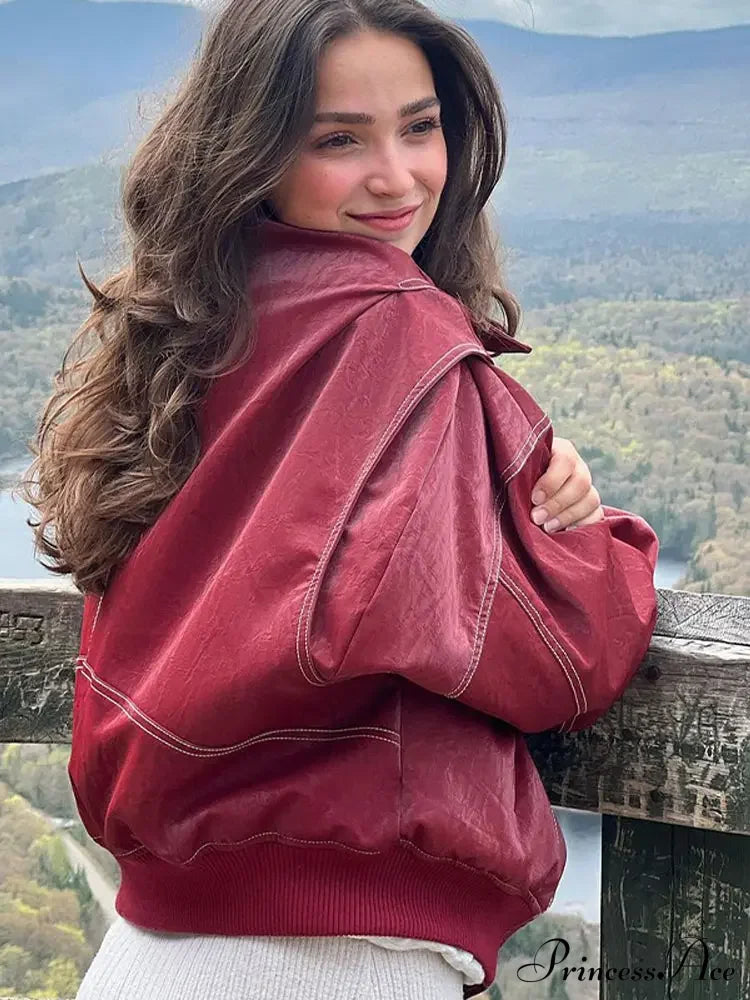 Autumn Leather Oversize Long Sleeve Turn-down Collar Fashion Casual Jacket
