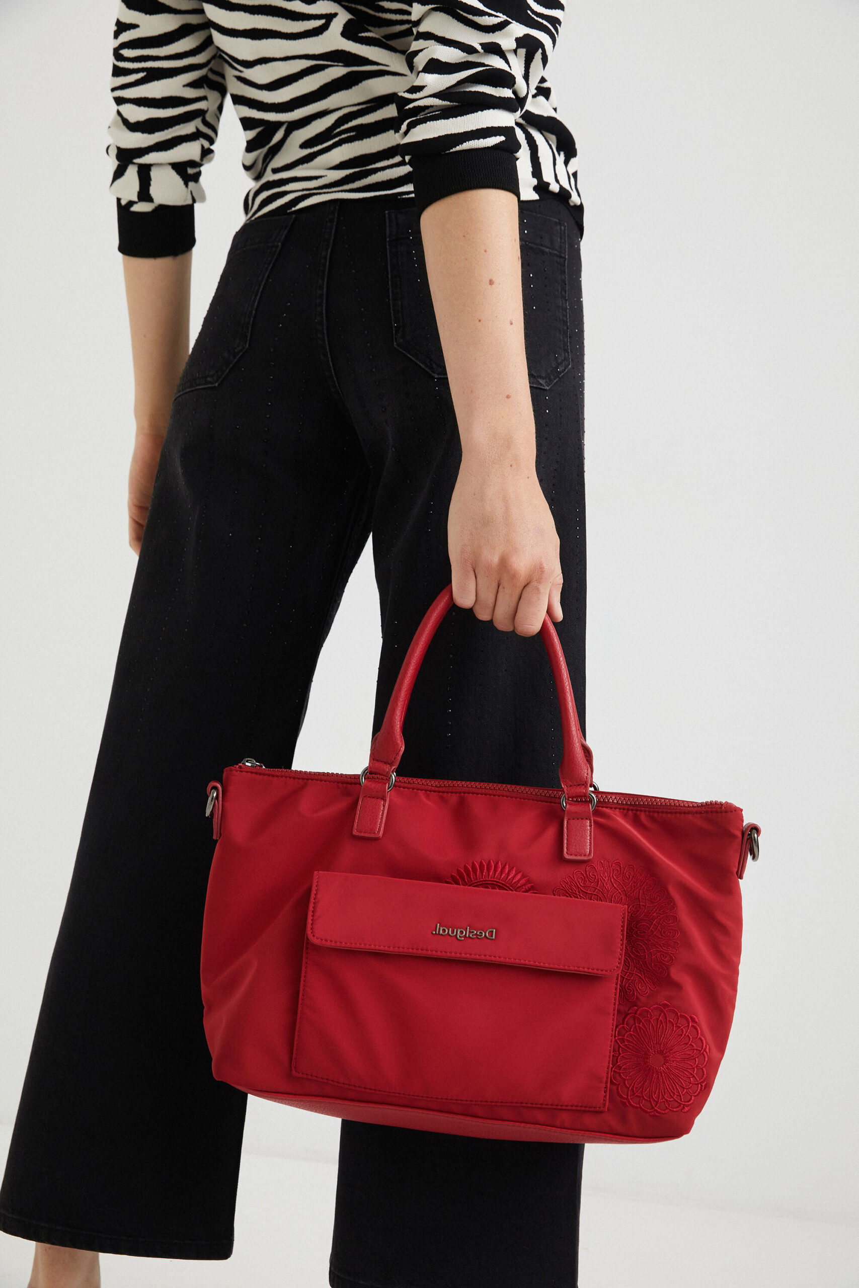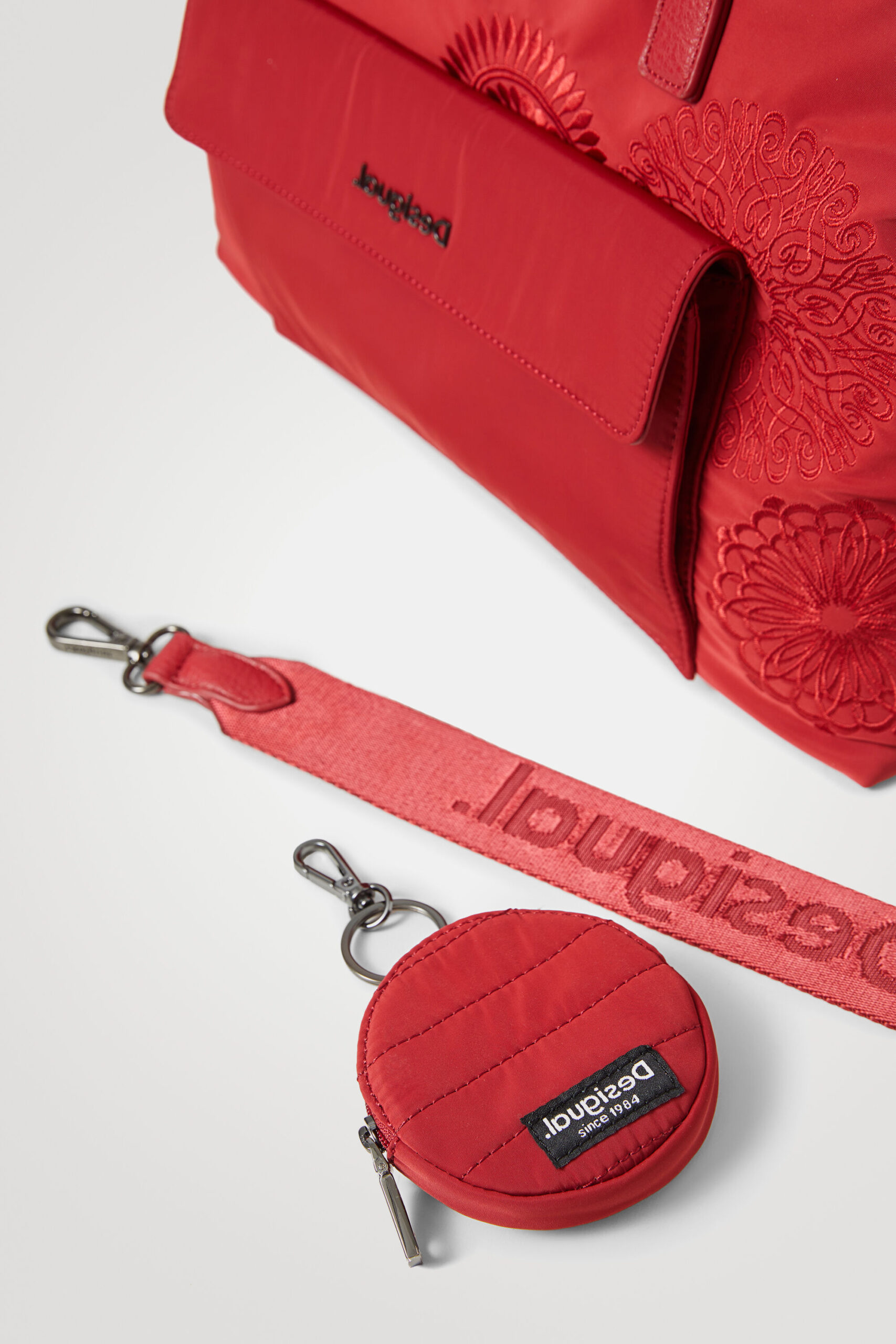 - Long removable strap in canvas fabric with the Desigual logo