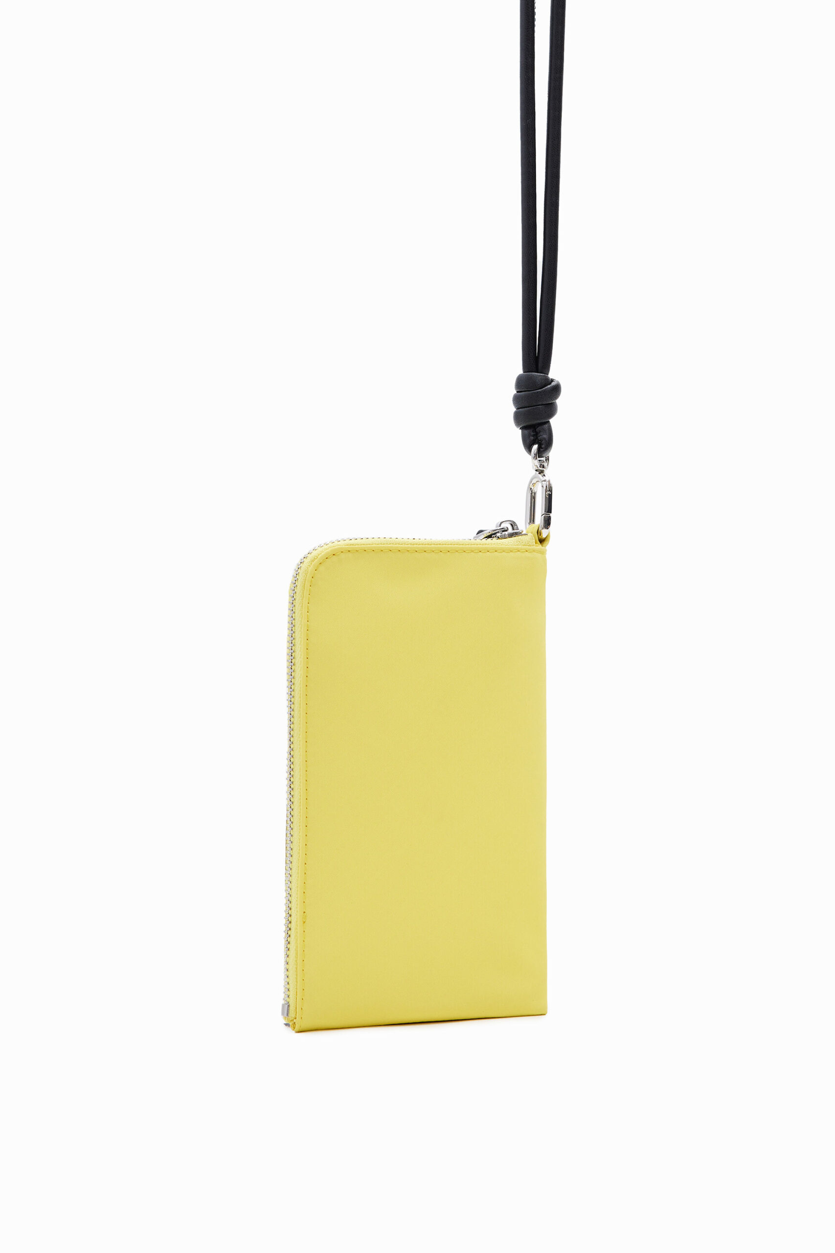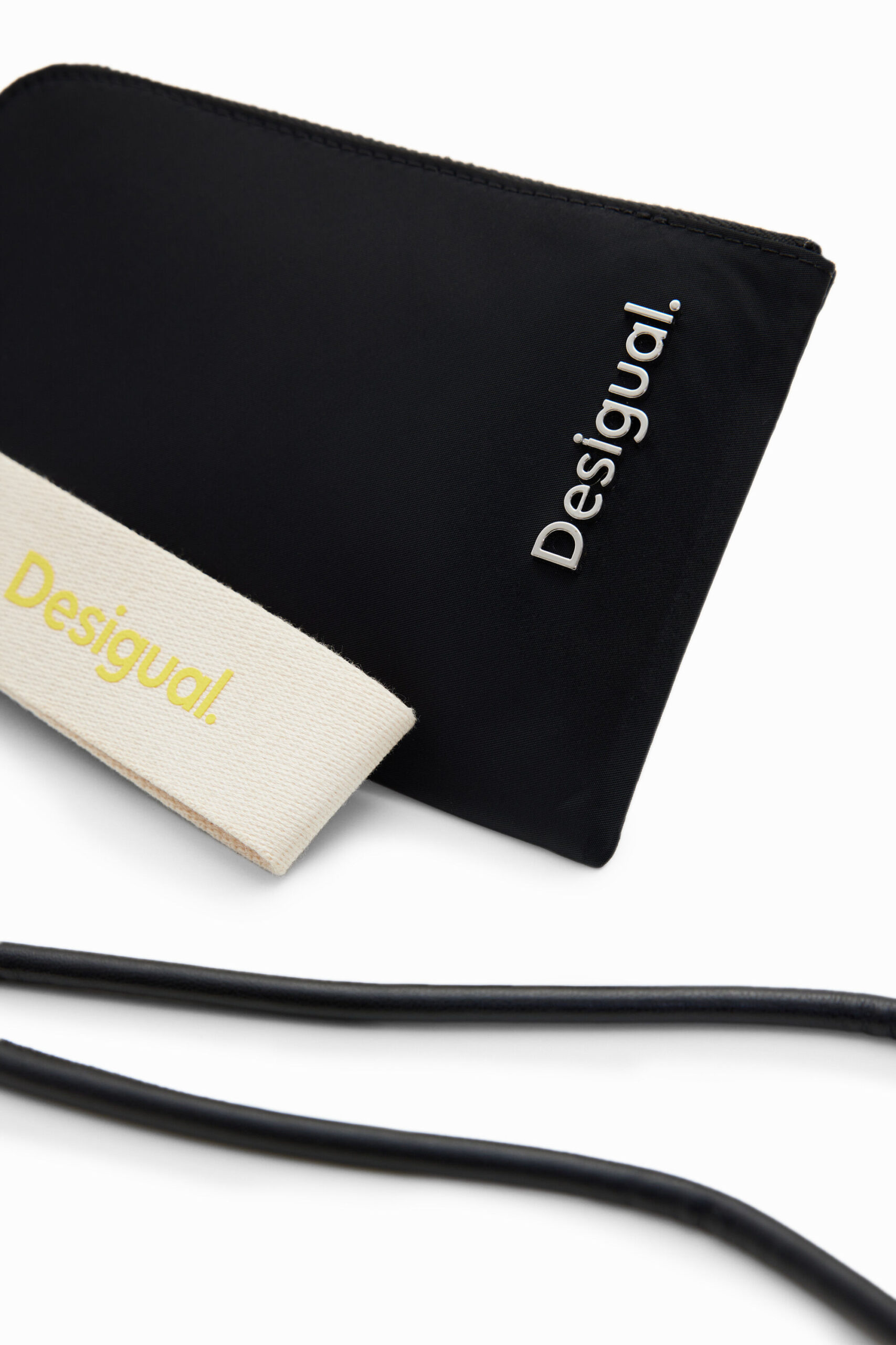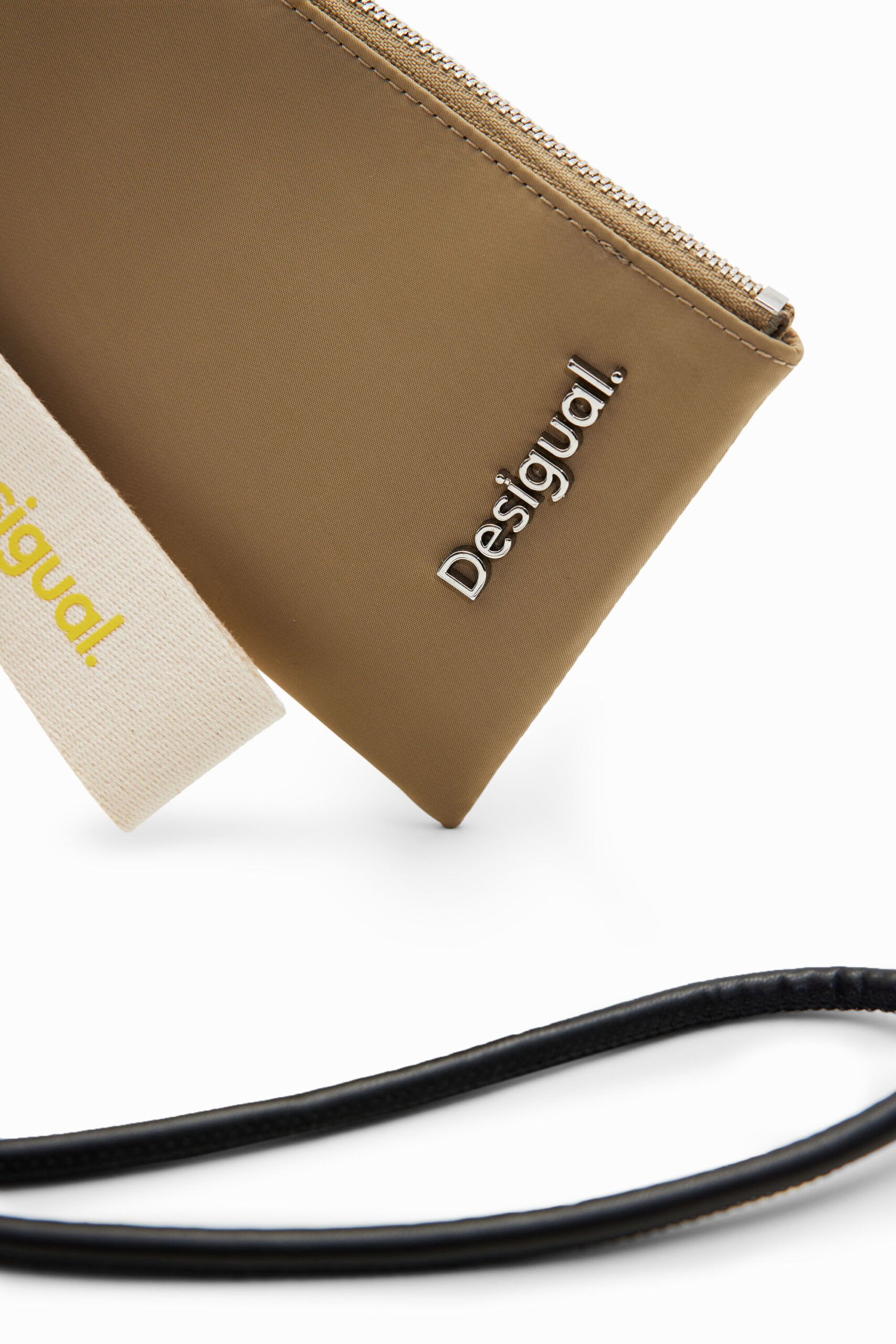 - A clutch handle and a detachable leather-effect cord for wearing around the neck