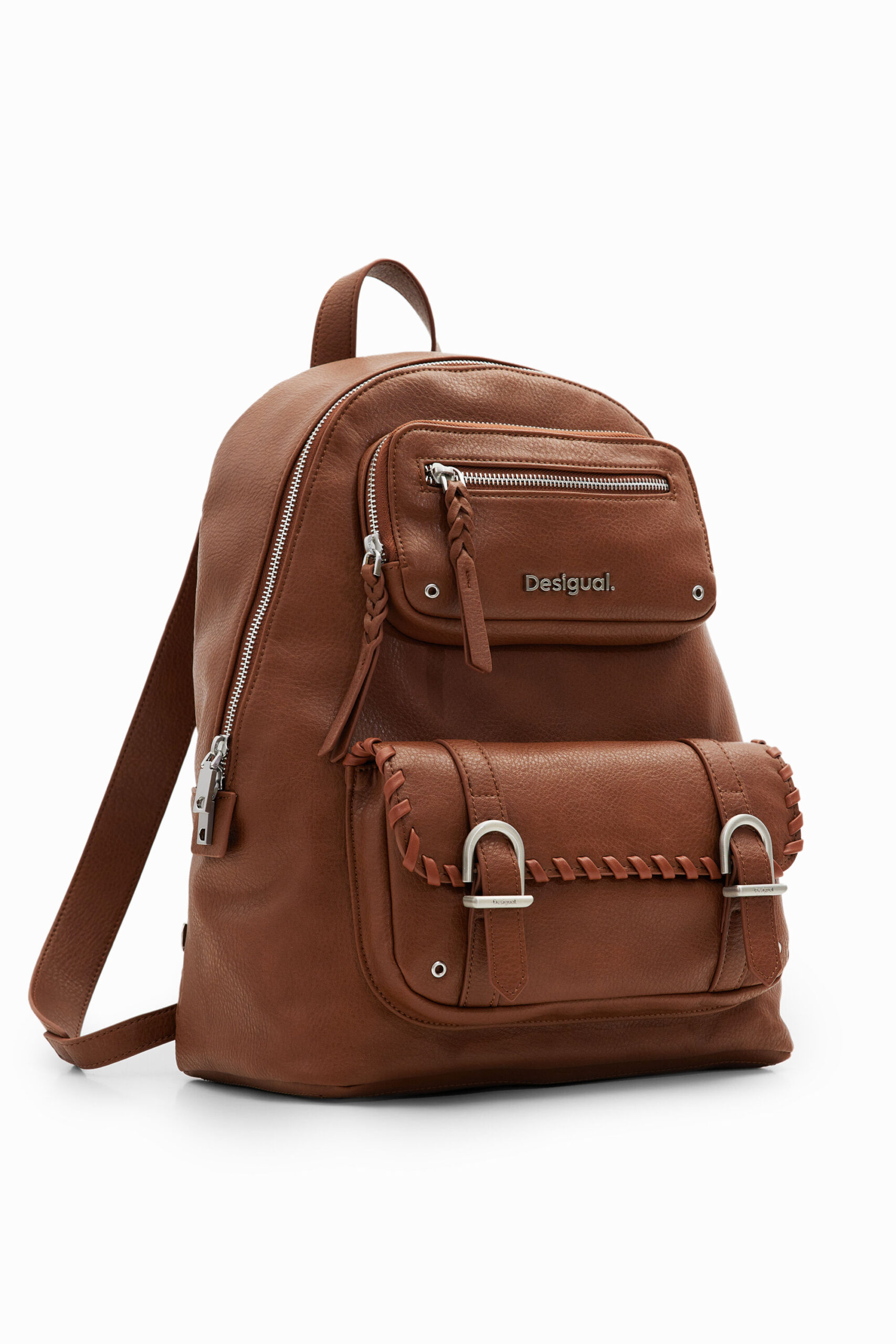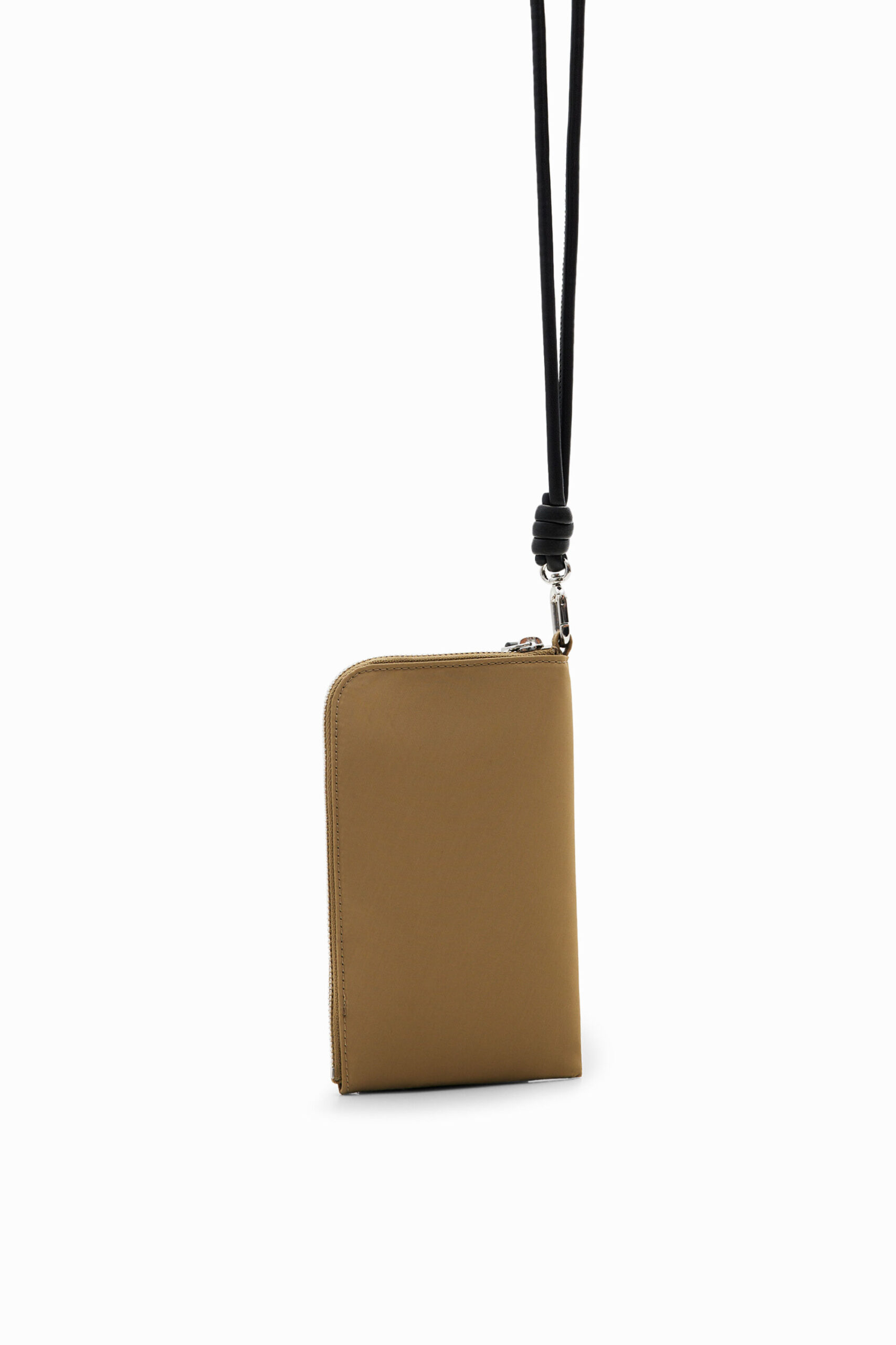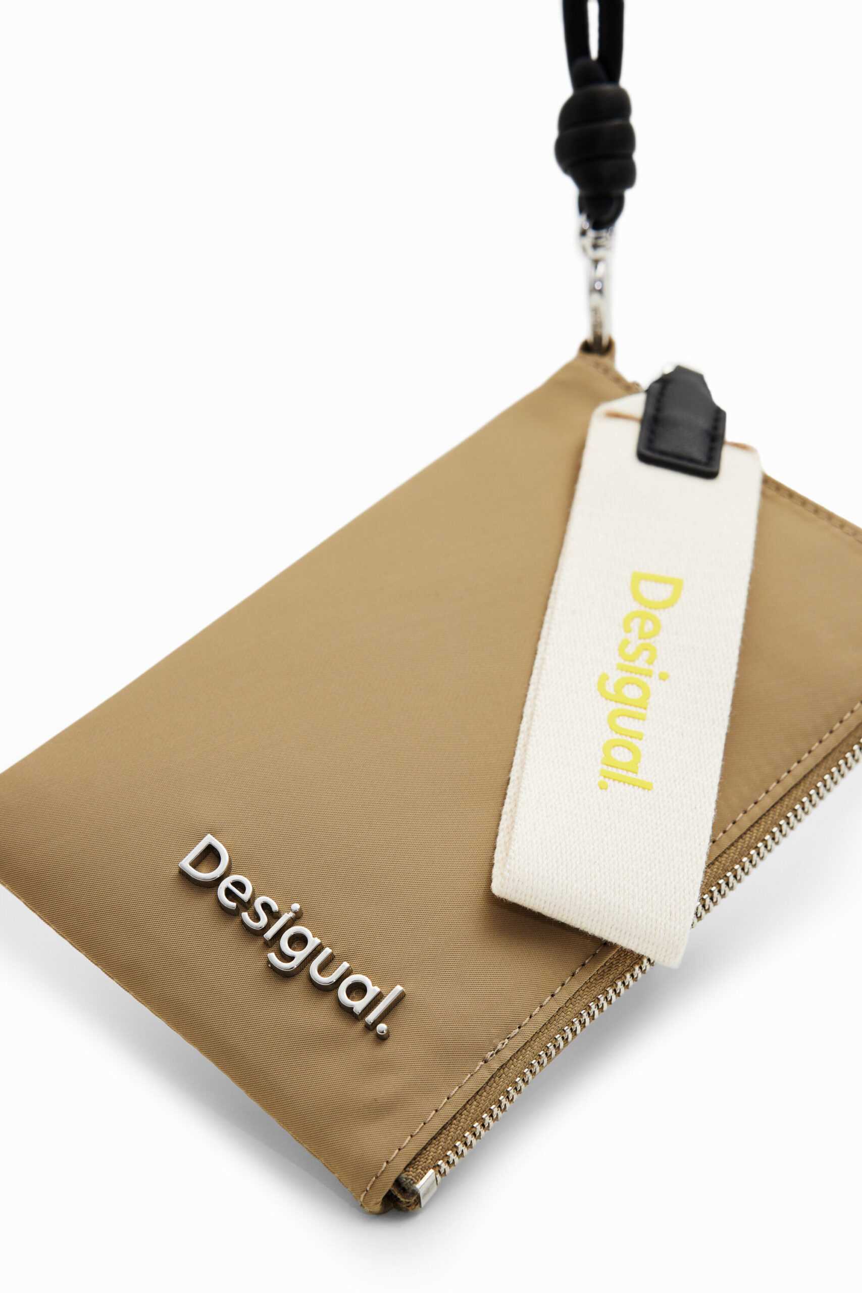 - A clutch handle and a detachable leather-effect cord for wearing around the neck