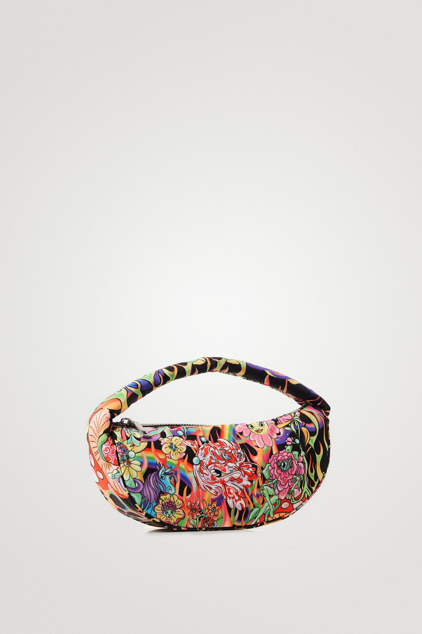 This half-moon sling handbag with an arty flame print is a María Escoté design made from a supple and malleable material that’s right on-trend.