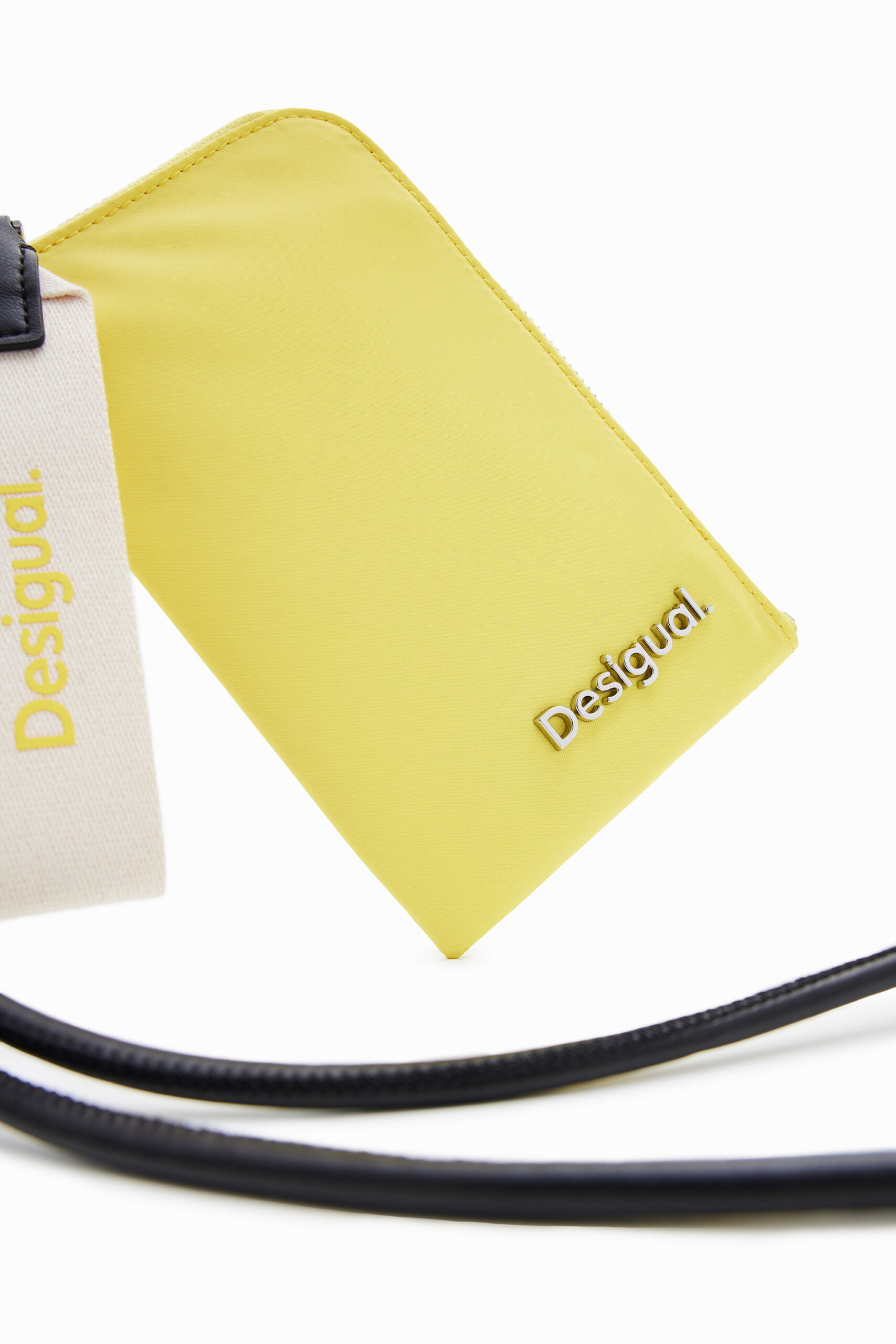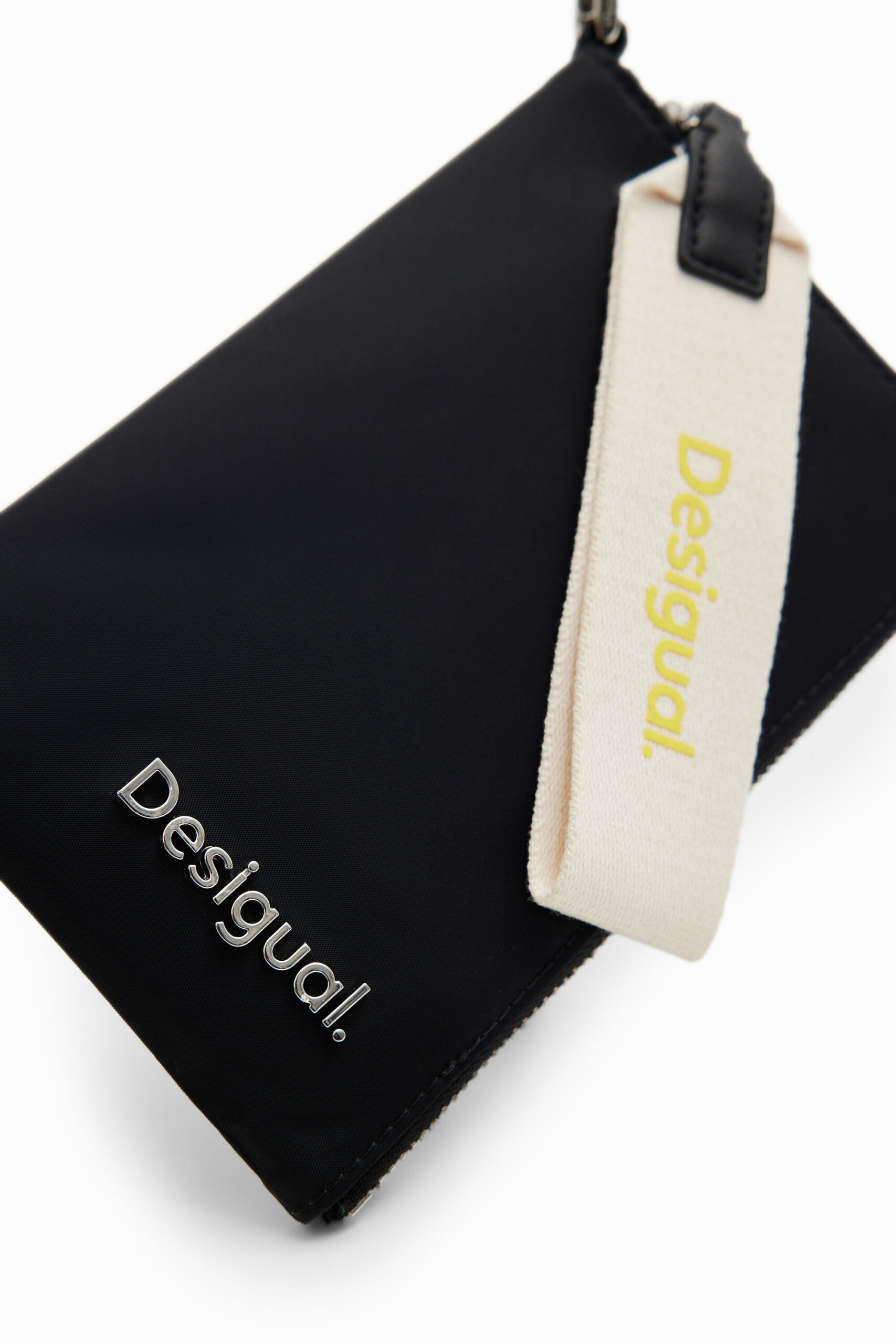 - A clutch handle and a detachable leather-effect cord for wearing around the neck