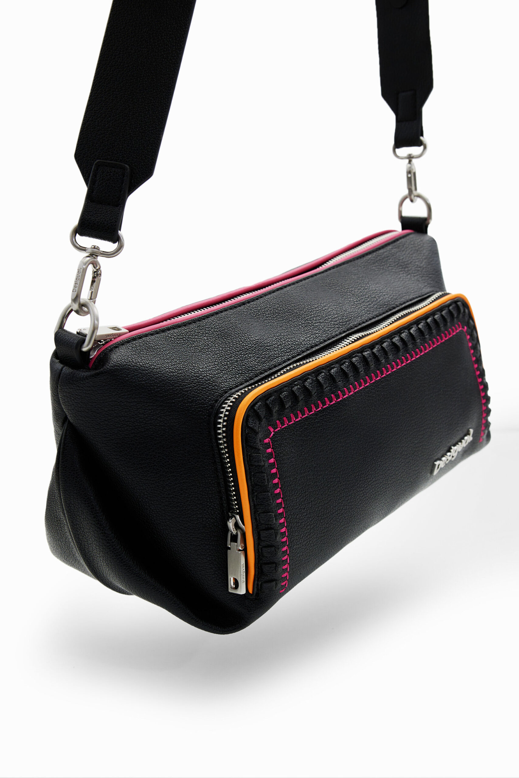 - Two detachable leather-effect straps: a short shoulder strap and a long adjustable crossbody strap